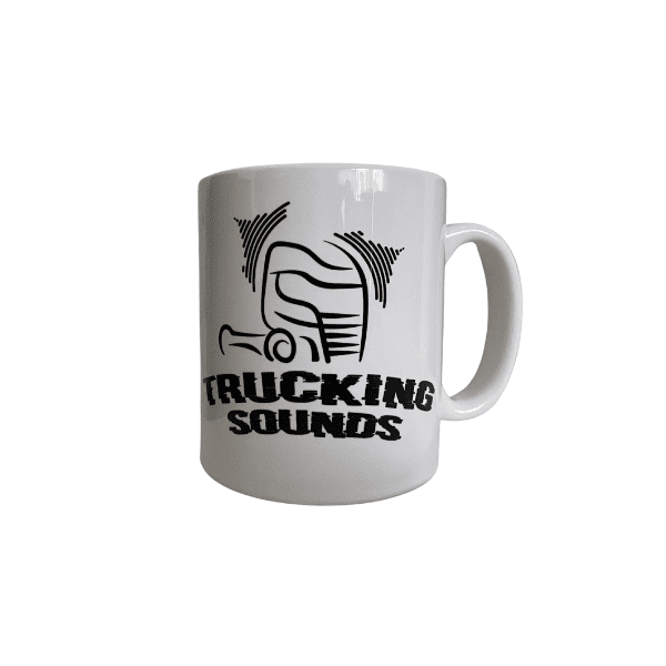 Ceramic white mug with the Trucking Sounds logo on the front & Back.